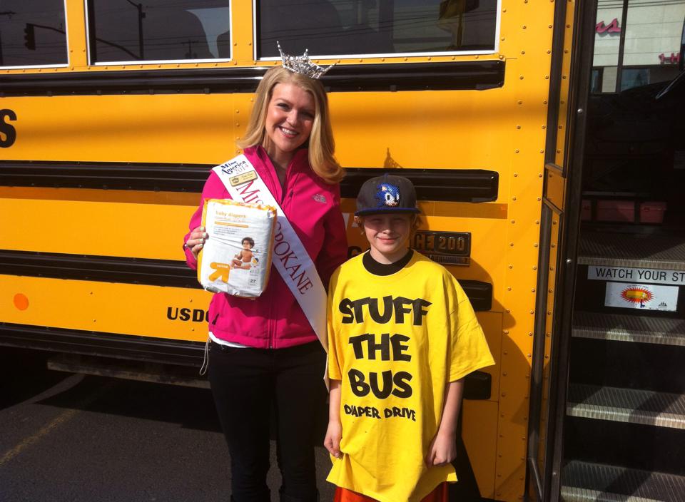 I am stuffing the bus with diapers, for families that cannot provide them themselves. This morning I was fortunate to help with an event Called Stuff the Bus, put on by Inland Northwest Baby. Because I was one of the first people to arrive, I was the first to drop off diapers and from there on out it was all smooth sailing!