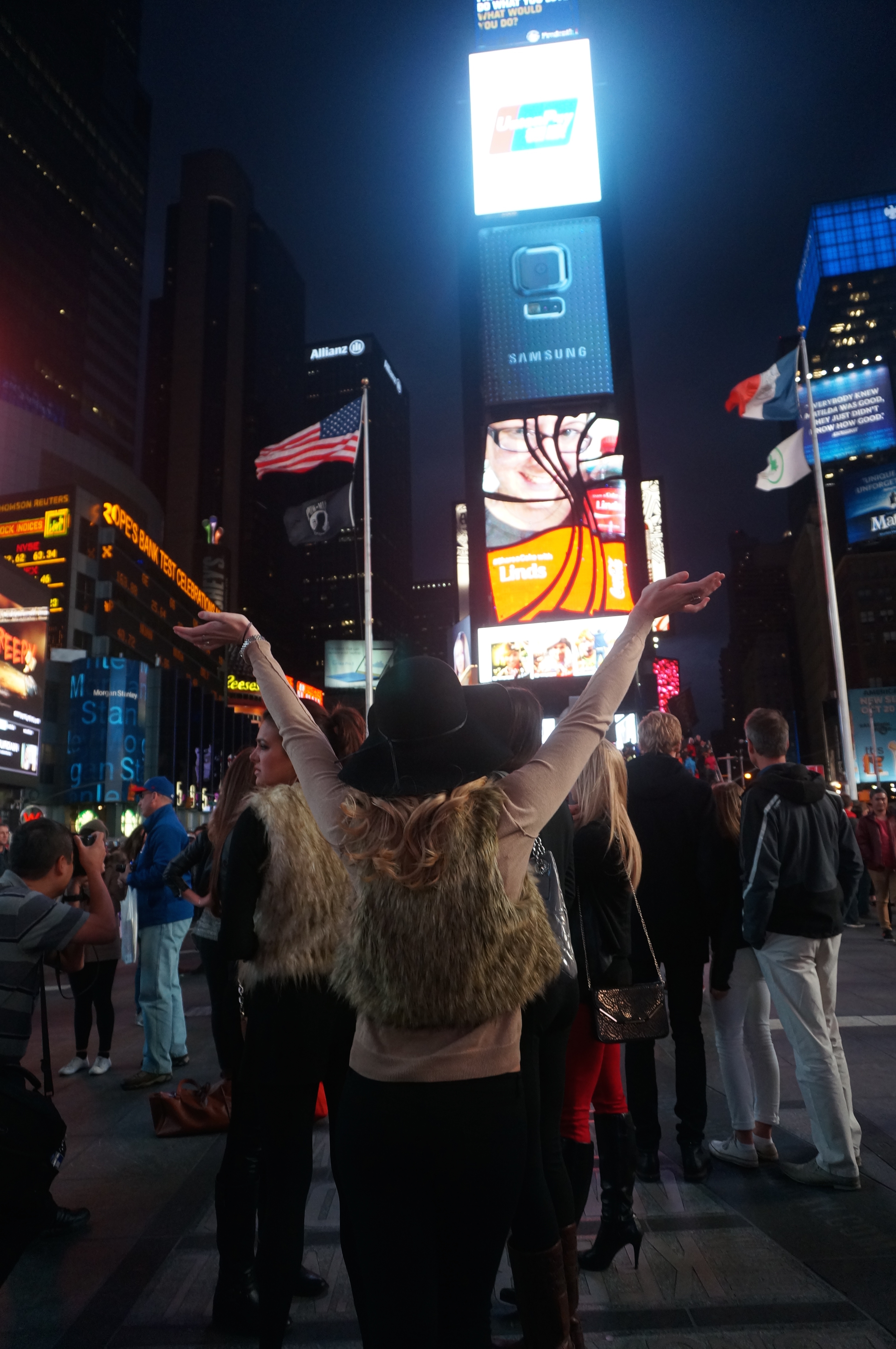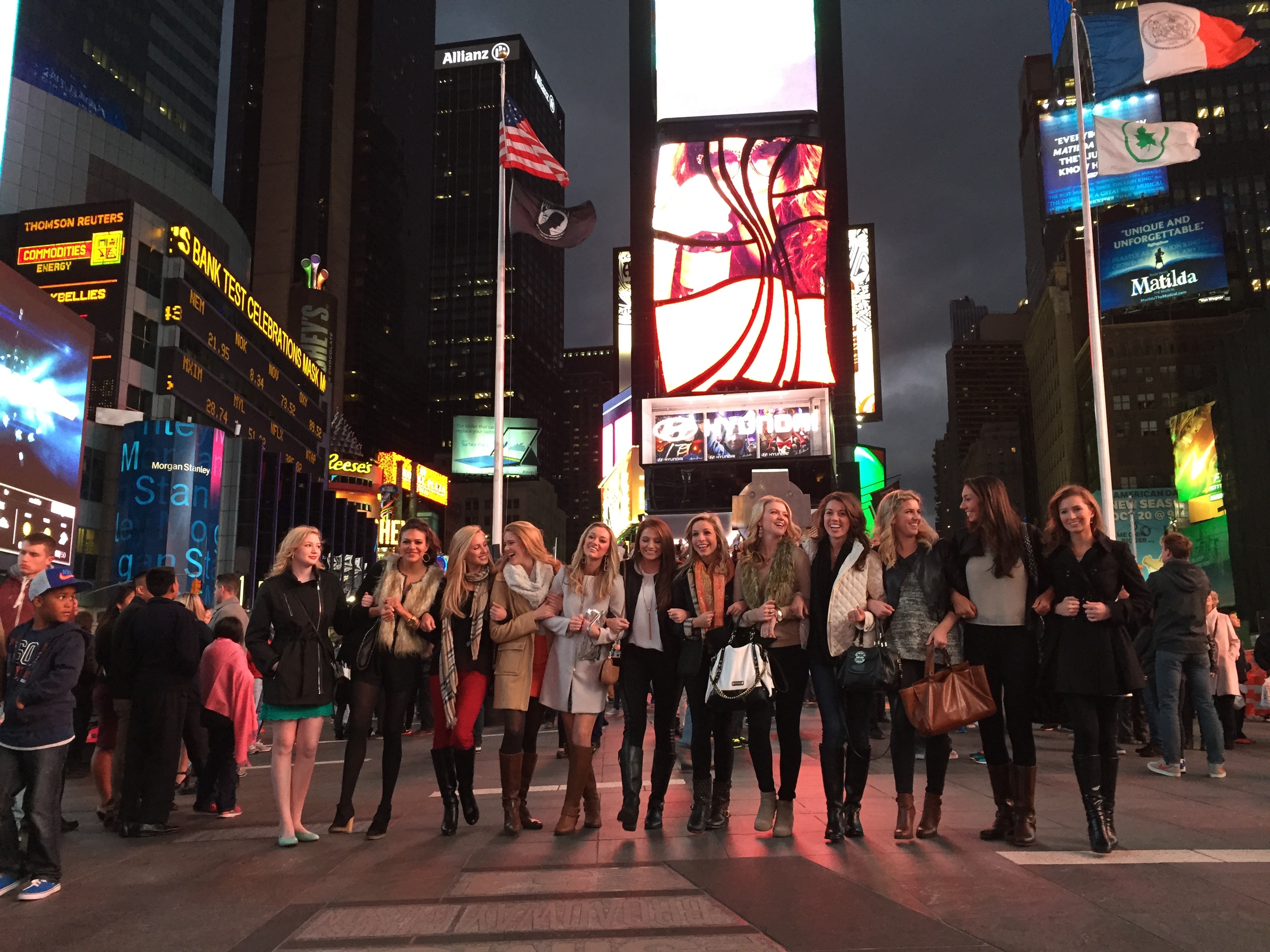 When we finally got to the red bleachers in the heart of TSQ, all of us girls got in a line and started to take pictures. Again, we were all dressed up and taking up quite a bit of space in our line that I think people started to assume that we were “somebody” because they started taking pictures of us too.
