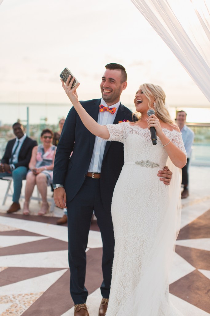 Things will be out of your control. Weather, good food, dancing…all are things that are out of your hands no matter where you are. But, with a destination wedding, we hadn’t actually seen the outside venue until we arrived at the resort, tried the food until the night of our wedding, or heard the DJ until he started playing music for the reception. All in all, everything turned out great. But, just know that in some aspects you may be going in a bit blind. With those areas, you may have to trust that the resort (who does this all the time) works with top-notch vendors. One thing I will say about the food is we were staying at an all-inclusive resort, so we knew that if the guests weren’t satisfied with the food, they could order room service or get food from another restaurant. That may not always be ideal, but this way everyone wins! In terms of weather, it was supposed to rain on the day of our wedding (but turned out to be perfect weather) and the resort had a ballroom designated for us just in case.