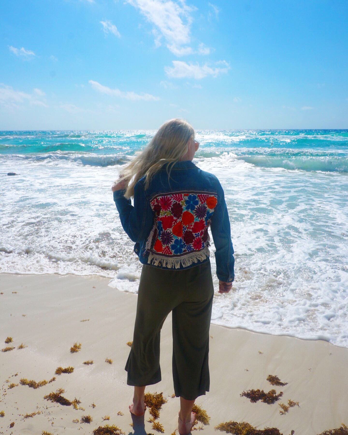 Vagabond Denim– This hand-crafted denim jacket was the cherry on top of my ensemble. The unique colorful textile is sourced fair-trade, and stitched onto the back of a vintage/ thrifted jean jacket. Plus, the company donates a portion of their proceeds to feeding hungry children in Honduras.